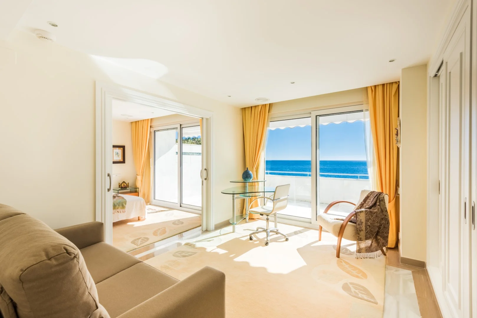 This exclusive apartment has been fully renovated, never used and built to an extremely high standard, boasting a very private and spacious terrace from where the frontal sea views can be enjoyed. It comprises a large and bright lounge/dining room, a modern fitted kitchen, three bedrooms and three baths. The development is located just off the beach in Marbella. The Paseo Maritimo with its abundance of restaurants and bars is on hand. This is a unique opportunity of getting a new frontal beach apartment at the best location.